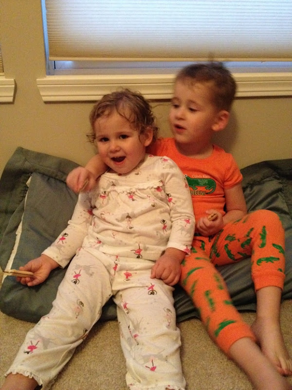 Easter night, my kids were dressed and ready for bed when they nabbed a bag of Milano cookies and decided to huddle in my bedroom floor eating them. I thought they were hilarious so had to grab a few pictures. The faces make me laugh... and then Owen said the sweetest thing.
